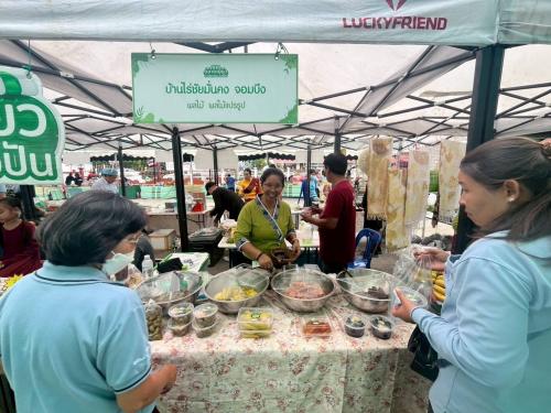💠 ในการนี้ นางสาวสาวิตรี ลำดับศรี พัฒนาการอำเภอจอมบึง ได้เข้าร่วมกิจกรรมดังกล่าว โดยภายในงานมีการจัดแสดงนิทรรศการ การจัดจำหน่ายสินค้า OTOP หลากหลายผลิตภัณฑ์ และสินค้าท้องถิ่นจากตลาดเขียว เกษตรแบ่งปัน