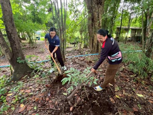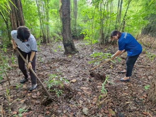💠 ซึ่งผู้เข้าร่วมกิจกรรม ร่วมกันดูแลบำรุงรักษาต้นไม้ ด้วยการพรวนดิน ใส่ปุ๋ย กำจัดวัชพืช ได้แก่ ต้นแคสัก ต้นไม้แดง ต้นผักหวาน ต้นไพร ฯลฯ